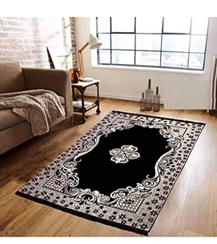 Efinito Carpet|Water Absorption Kalamkari Paisley Pattern Floor Mat|Velvet Sitting Carpet for Hall, Living Room, 5×7 Feet (Navy Blue)