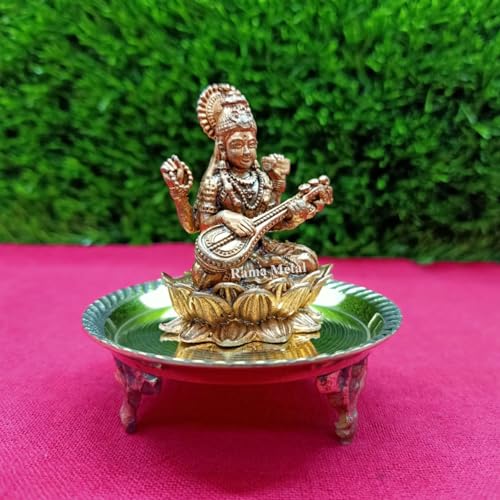- MATERIAL : COPPER | COLOUR : Copper | PACKAGE CONTAINS : 1 COPPER SARASWATI IDOL & BRASS MUKALI STAND.