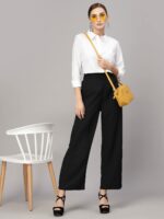 • To style this shirt, pair it with slim-fit black trousers and high heels for a sleek, professional look. For a more casual yet polished outfit, tuck it into a denim skirt and pair with ankle boots. This versatile piece can be dressed up or down depending on the occasion, making it a must-have for every woman’s wardrobe.