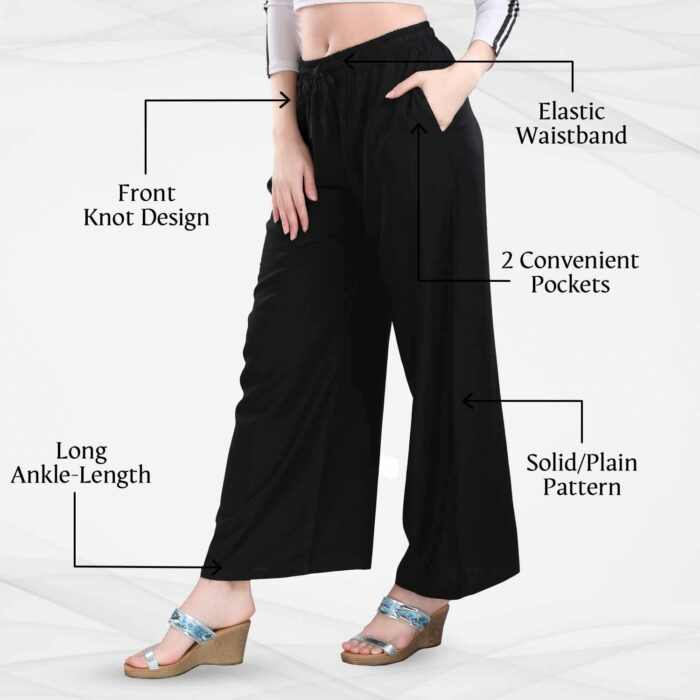 - Style : Relaxed Palazzo; Pattern: Solid/Plain; Fit: Relaxed